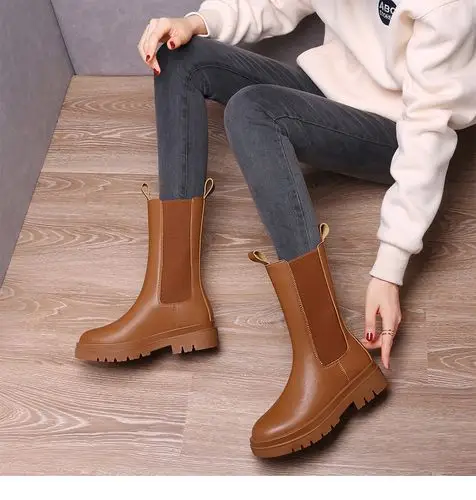 英伦风中筒靴子单靴子百搭短靴黑色2022真皮靴女马丁靴