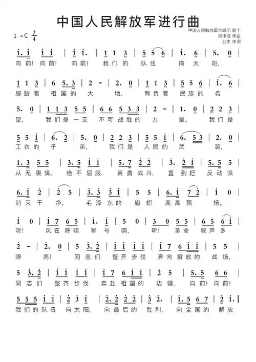 中国人民解放军进行曲(纯音乐)简谱乐谱