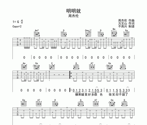 >>明明就 民谣吉他弹唱谱 周杰伦