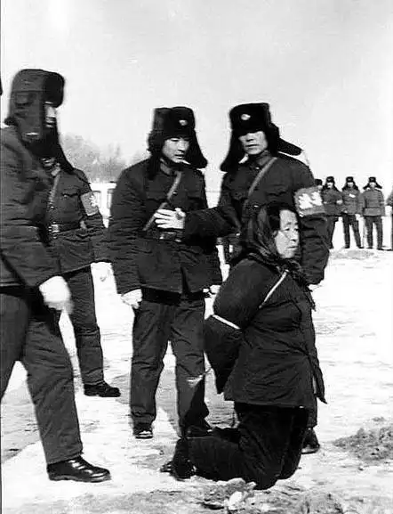 这是83年严打,一个被判处死刑的女囚犯,被押赴刑场执行枪决时的照片.