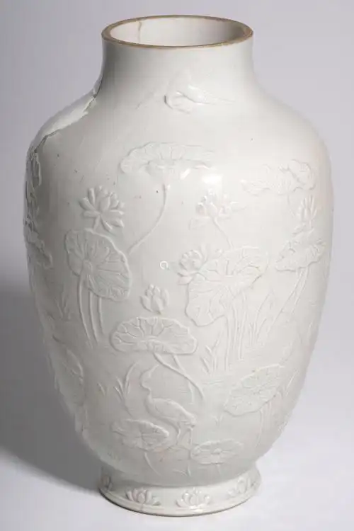 仿定窑白釉花卉纹天球瓶】拍卖品_图片_价格_鉴赏_清代单色釉瓷器