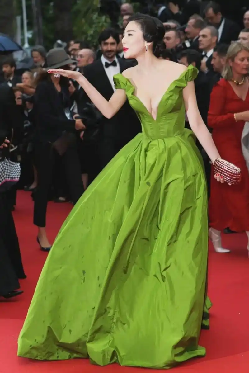 张雨绮真敢穿,深v抹茶绿长裙秀傲人上围,不愧是"人间尤物"!_好身材