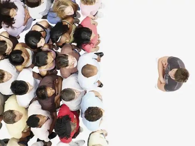 一群人围着一个红的人沟通业务团队团队精神团队精神木制人像一群人