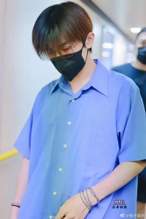 易烊千玺到达西宁##易烊千玺蓝色衬衫