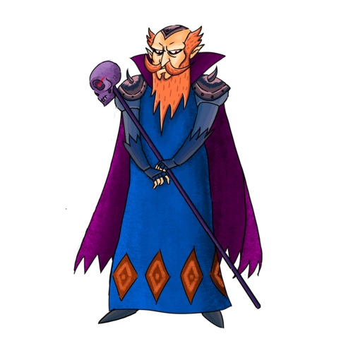 卡通老巫师拿着魔杖