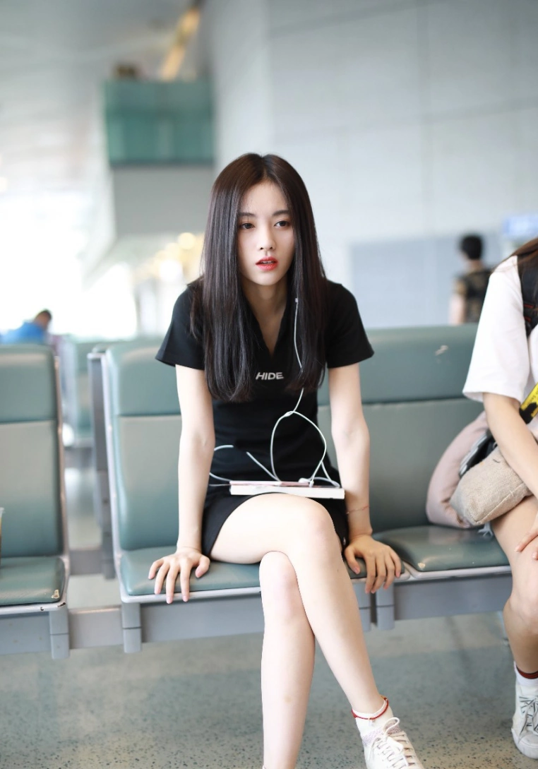 鞠婧祎今日现身上海机场,身着t恤款小黑裙,搭配连袜小白鞋