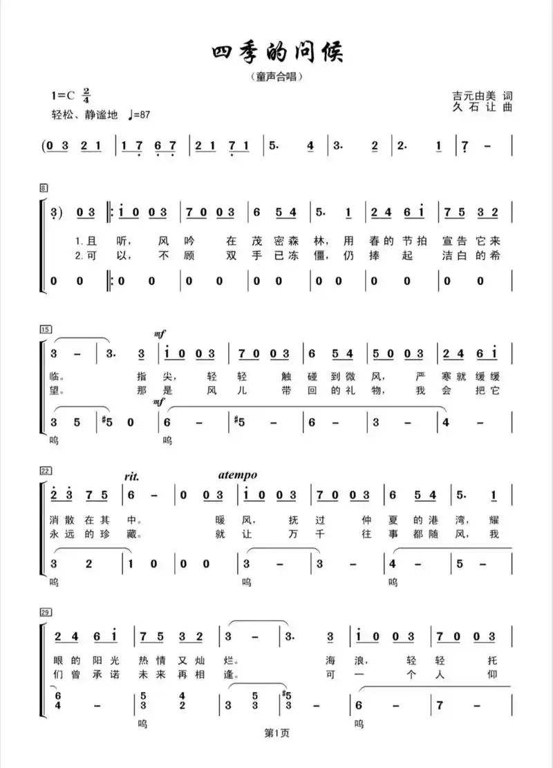 春夏秋冬_简谱_搜谱网