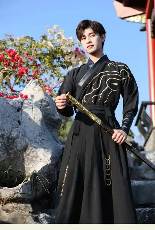 疾奔 汉服成人男汉服男仙气古装男装古风公子古风大袖衫男士侠客 汉蓝