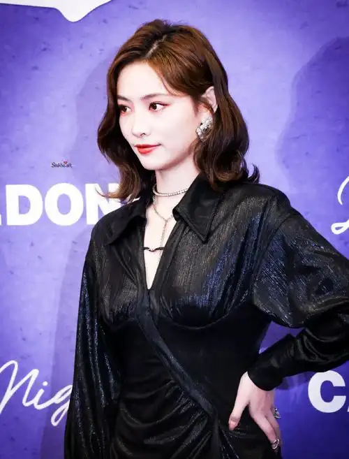 许佳琪今日上海活动现场黑色亮片露背群搭配小波浪卷,甜酷辣妹kiki好