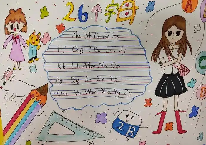 4,第四张26个英文字母手抄报简单又好画5,第五张关于26个英语字母的手