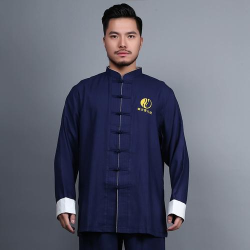 2020秋季新品亚麻纯色道服跆拳道长袖训练服宽松休闲套装男太极服