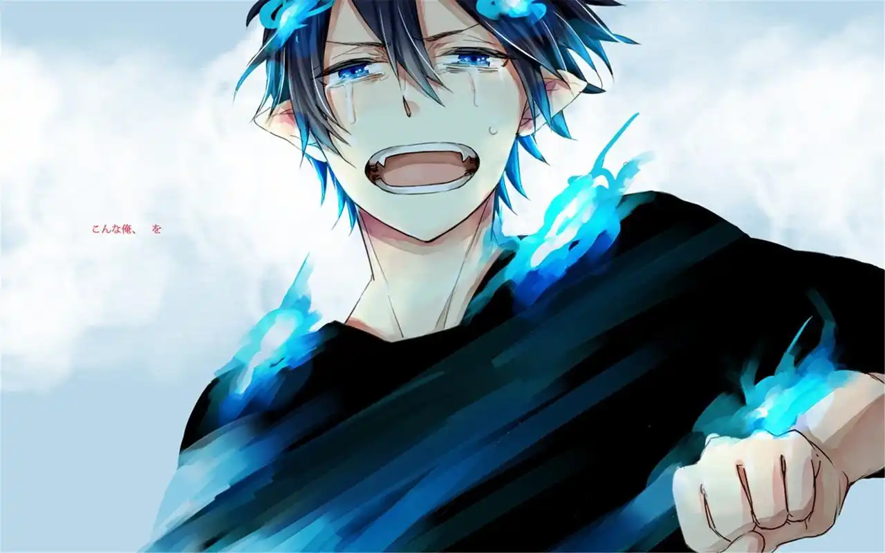 动漫蓝色驱魔师蓝色火焰中的帅气卡通男生高清图片桌面壁纸下载