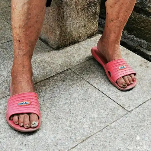 这位老人因为腿部痛风30多年一直不好,自己也就终年赤脚,说是这样感觉