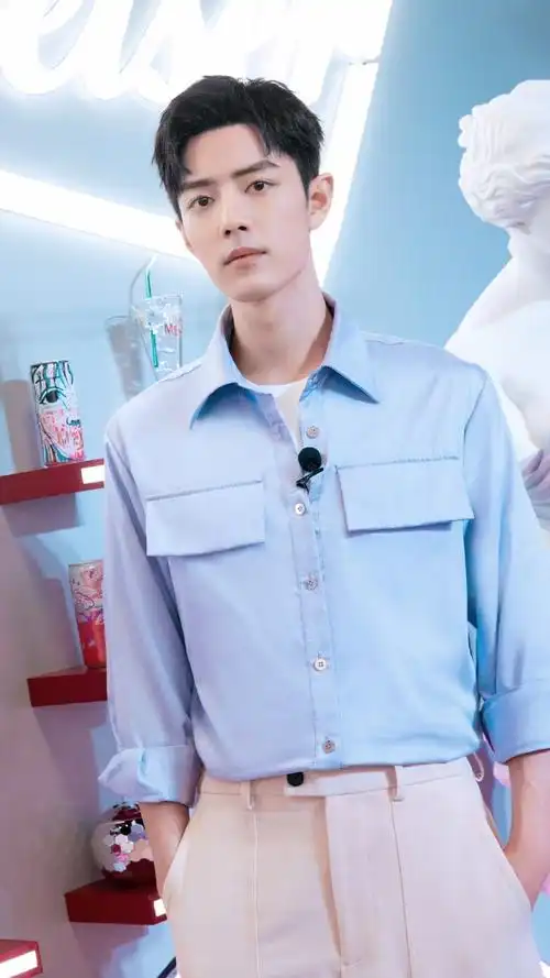 肖战蓝色衬衫直播造型##肖战壁纸