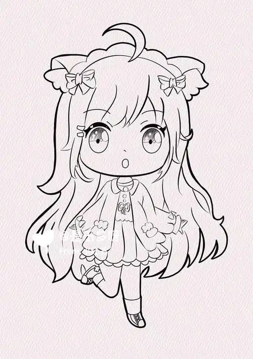 黑白线稿q版小可爱动漫线稿素材