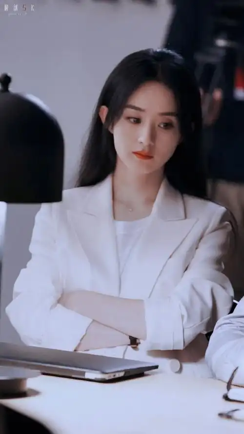 高高的马尾辫带有着十足的御姐风,赵丽颖的黑色西装将她霸道女总裁的