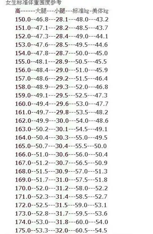 就会发现身高165cm的江映蓉的腿围数据这不,对照女生标准腿围尺码表