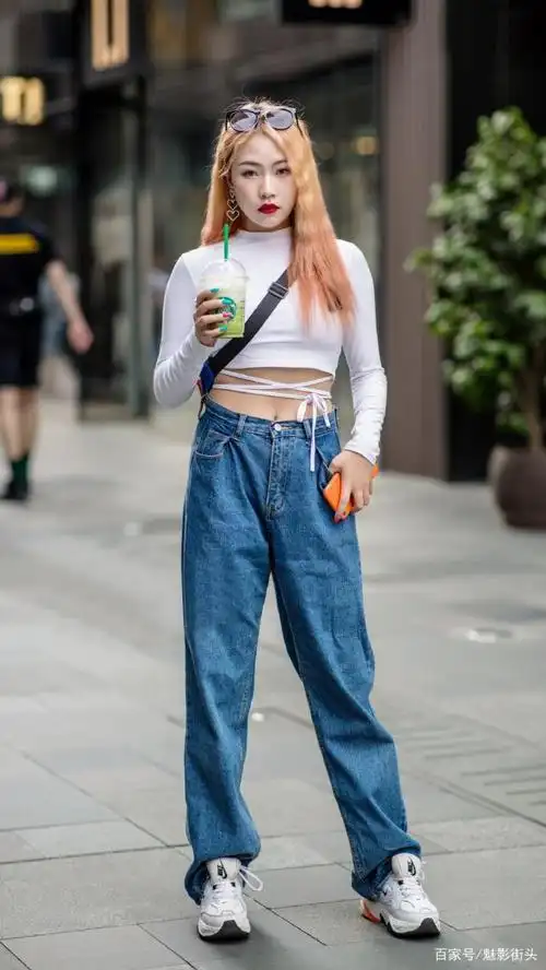所以此时宽松版型的牛仔裤搭配就显得比较重要一些,选择宽松的但是
