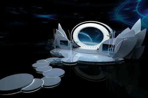 舞台上方72个数控方形led灯笼造型,搭建成多层同心圆数控矩阵装置,大