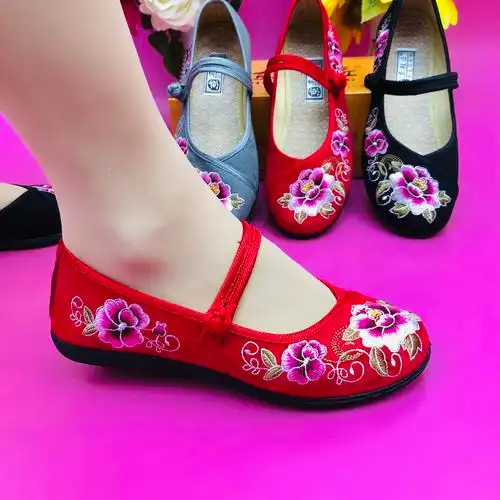 倾世芳华广场舞春夏新款老北京女布鞋民族风绣花鞋软底跳舞蹈鞋女