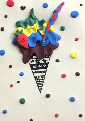 甜筒冰激凌一学就会的粘土画