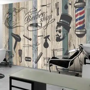 3d手绘复古理发店壁纸美容美发造型室背景墙壁画时尚发廊墙纸墙布
