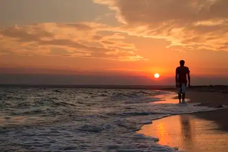 一个人在海滩漫步很迷人的图片