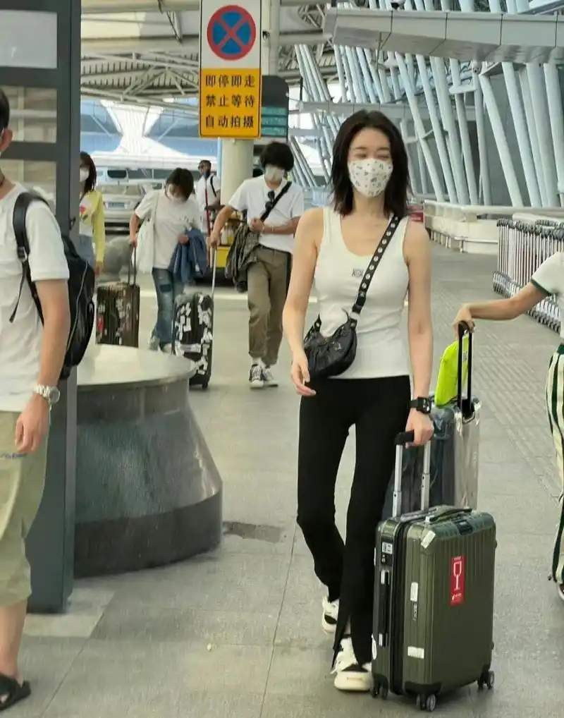 李小冉在上海机场亮相时尚搭配光彩照人令人惊艳