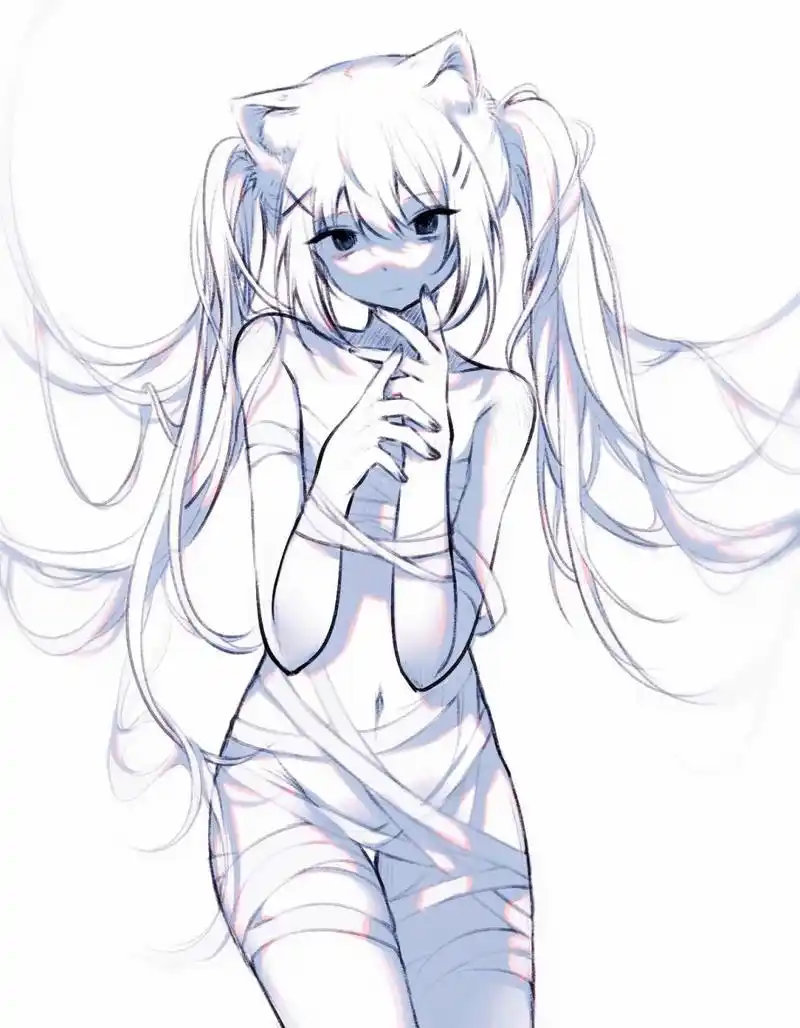 黑白线稿少女 动漫插画参考イヌシマ
