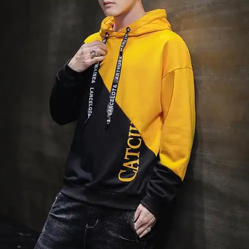 休闲连帽卫衣男春款宽松套头男士卫衣时尚休闲百搭长袖拼色男装视频