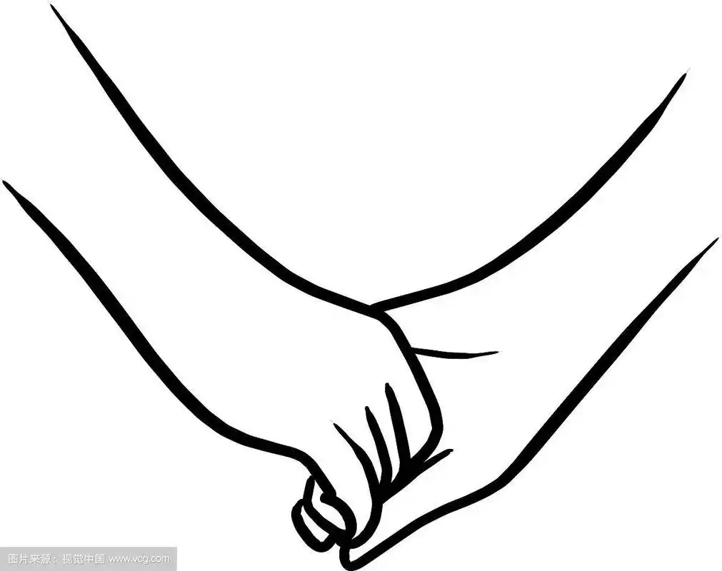 情侣手牵手十指相扣简易矢量线稿插画