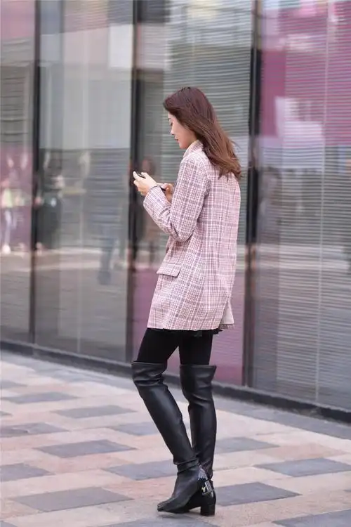 搭配,每个人的想法都不一样,这位美女选择一款黑色长靴,不是过膝的