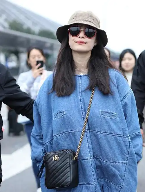 31岁倪妮真是有颜任性了,套着个"布袋"走机场,这腿真羡慕不来|街拍|穿