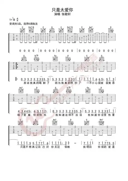 简谱张敬轩只是太爱你附歌词和弦