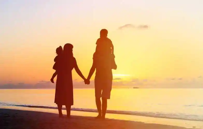 海边夕阳下的四口之家