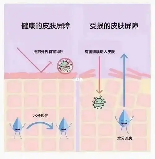 健康的皮脂膜和受损的皮脂膜比较