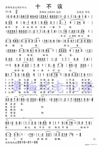 zyjhbq(传谱)查看更多>>(十不该) / zyjhbq传谱相关歌谱:[简谱]十不该