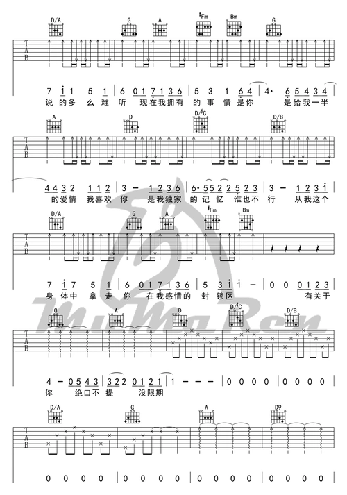 独家记忆吉他谱-1