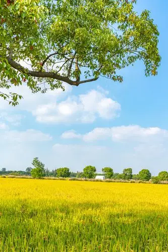秋日丰收稻田风景高清桌面壁纸