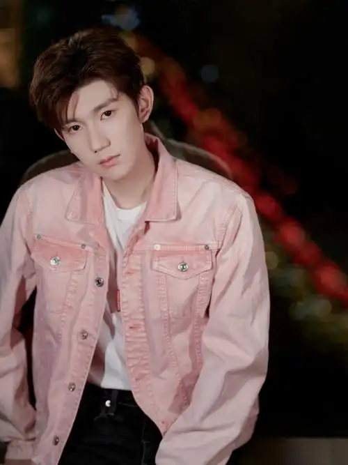 王源粉色灯芯绒套装造型