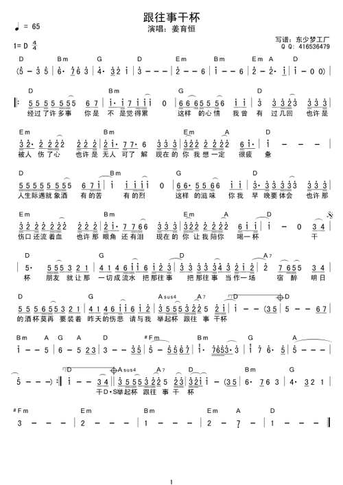 跟往事干杯_歌谱简谱_哆来咪123曲谱网