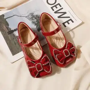 女童公主鞋2022春秋季新款儿童软底红色皮鞋女宝宝鞋子蝴蝶结单鞋