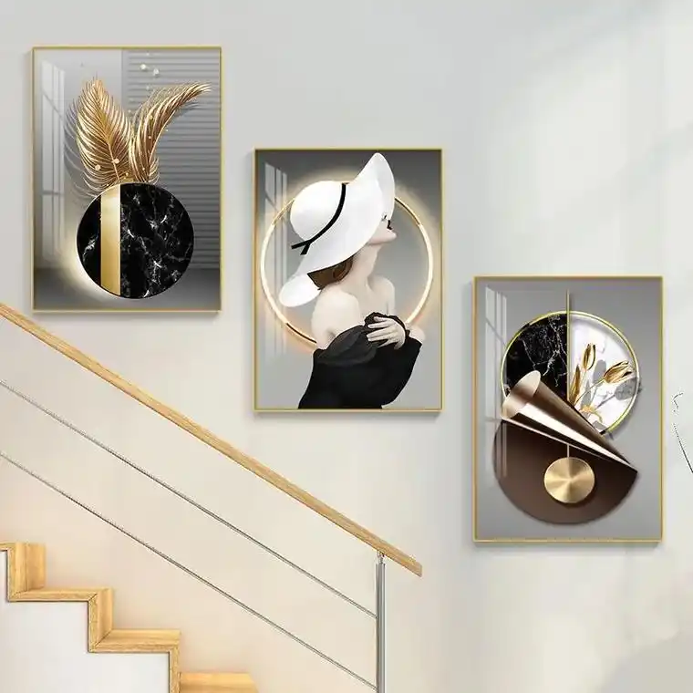 现代简约楼梯挂画复式楼梯走廊墙面装饰画简约三联画客厅玄关挂画